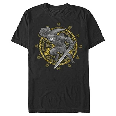 Nintendo Men's Legend of Zelda Link Tonal Triforce Collage T Shirt, Black, Medium