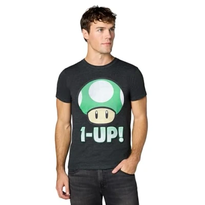 Nintendo Men's Mario 1 up Mushroom T Shirt, Charcoal Heather, XL