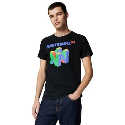Nintendo Men's N64 Logo Short Sleeve T Shirt, Black, S