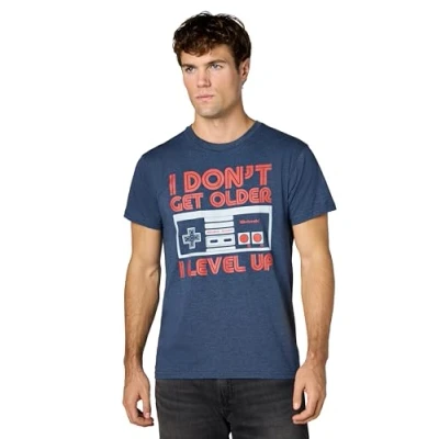 Nintendo Men's NES Controller Get Older Level Up T Shirt, Navy Blue Heather, Large