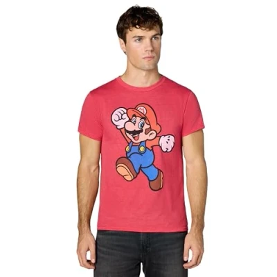 Nintendo Men's Super Mario Jump Pose T Shirt, Red Heather, Medium