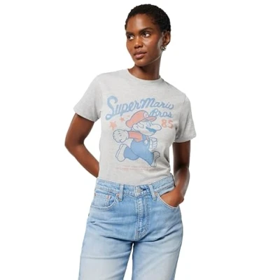 Nintendo Men's Super Mario Running Profile 1985 T Shirt, Athletic Heather, XL