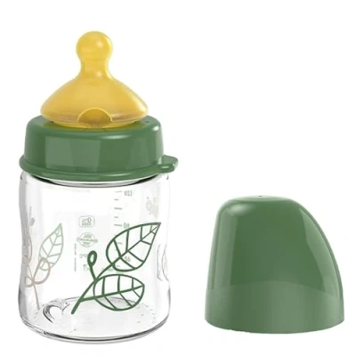 nip Cherry Green Wide Neck Glass Bottle 120 ml, Sustainable, Shaped Teat Natural Latex, Anti Colic, from Birth, Also for Breastfeeding, Colour