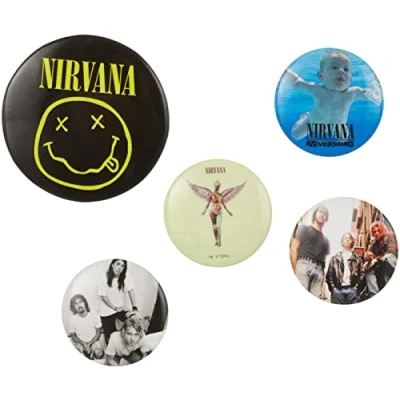 Nirvana (Iconic) Badge Pack from Pyramid International Officially Licensed Set contains 4 x 25mm badges and 1 x 32mm badge