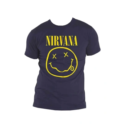 Nirvana T Shirt Yellow Smile Band Logo New Official Men's Black, Navy, XL