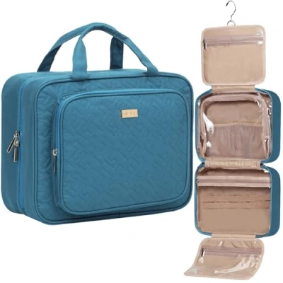 NISHEL Travel Toiletry Bag for Women Large Capacity, Makeup Essentials Organizer, Hanging Case Accessories, Cosmetics, Lake Blue