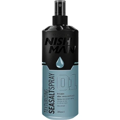 NATURAL BEACH LOOK - NISHMAN Texturising Sea Salt Spray 01 - Keratin & Aloe Vera delivers a natural, tousled beach look, creating effortless waves and texture for a relaxed, fresh-from-the-sea style that lasts all day. KERATIN AND ALOE VERA CARE - This unique sea salt spray is enriched with keratin and aloe vera extract, strengthening hair fibers while nourishing the scalp, helping to maintain healthy, hydrated hair. MARINE RICH FORMULA - NISHMAN Sea Salt Spray 01 uses marine minerals to enhance natural hair texture, building lightweight volume and a flexible, touchable hold without any heavy buildup. LONG-LASTING ALL DAY HOLD - Designed for daily use, this salt spray offers a volumizing and texturizing effect that keeps your style in place from morning until night, even in humid environments. SUITABLE FOR ALL HAIR TYPES - Whether your hair is straight, wavy, or curly, NISHMAN Sea Salt Spray adapts effortlessly, delivering consistent volume and a natural finish for men and women alike. PROTECTION AND FRIZZ CONTROL - This marine rich texture spray helps shield your hair from heat styling and sun exposure, minimizing frizz while maintaining the hair’s softness, texture, and volume.