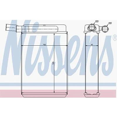 Cooling fins material: Copper Core Dimensions: 195 X 152 X 42 mm Radiator type: Brazed cooling fins Transmission Type: Manual- / optional automatic transmission Water tank material (radiator): Plastic Vehicle Equipment: for vehicles with/without air conditioning