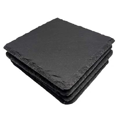 Nitaar Set of 4 Natural Slate Square Drink Coasters Ideal for Tea Coffee Mugs, Glasses, Cups