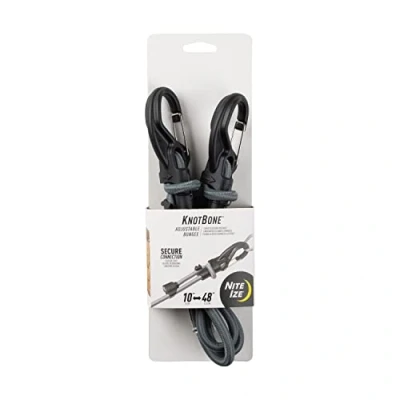 Nite ize KBB9 01 R3 Large KnotBone, Bungee Cord with Carabiner Clip Ends + Adjustable Length 10" 48", Size #9, Black