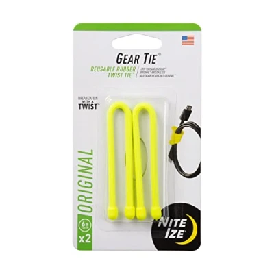 Nite Ize Original Gear Tie, Reusable Rubber Twist Made in The USA, 6 Inch, Neon Yellow, 2 Pack