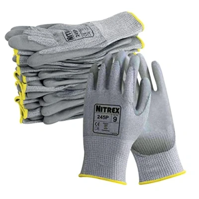 Nitrex 245P Work and Safety Gloves, Bag of 10 Pairs, Size 9 D Rated Cut Resistant Gloves with PU Palm Coating