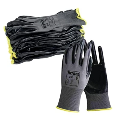 Nitrex 250 Work Gloves General Handling Safety Gloves, Abrasion Resistant Nitrile Palm Coating, Polyester Liner, Enhanced Grip, Mechanical and Industrial Protection 10 Pairs Size