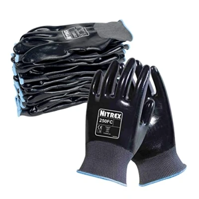 INCLUDES: 10 pairs of Unigloves Nitrex 250FC General Handling Gloves with nitrile palm coating, grey/black, size 6 MECHANICAL PROTECTION: the Nitrex 250FC work safety gloves are EN388 certified against mechanical risks, Designed for a wide range of general handling applications, these gloves are a suitable solution to a variety of potential workplace hazards, helping to ensure workers' comfort and safety HEAT RESISTANT: the Nitrex 250FC are EN407 certified against thermal risks, Designed to resist to temperatures up to 100°C NITRILE COATING: the nitrile palm coating is resistant to oil, which adds extra grip, plus the medium weight and close-fitting design offer a high level of dexterity and comfort during various tasks MULTI-PURPOSE: for everything from bricklaying, auto repairing, warehouse, construction, home improvement, close precision work, gardening and general maintenance, The Nitrex 250FC general handling gloves allow for unimpeded dexterity and abrasion resistance; an everyday solution for enhanced safety across multiple sectors