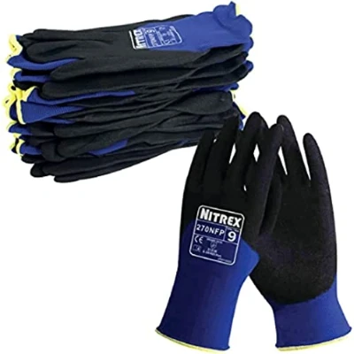 10 pairs of Unigloves Nitrex 270NFP General Handling Gloves with a 3/4 sandy nitrile knuckle coating, in blue/black size 10 Unigloves Nitrex 270NFP general handling gloves allow for unimpeded dexterity and abrasion resistance with enhanced grip; an everyday solution for comfort and safety across multiple sectors Designed for a wide range of general handling applications, these gloves are a suitable solution to a variety of potential workplace hazards, helping to ensure workers' comfort and safety For everything from landscaping to repairs, the Unigloves Nitrex 270NFP provide flexibility and protection against hazards like abrasion and tearing, even in harsh working conditions The NitreGrip sandy nitrile palm coating wicks away moisture and is resistant to grease and oil, for an enhanced grip; the lightweight and durable design gives a high level of dexterity during tasks