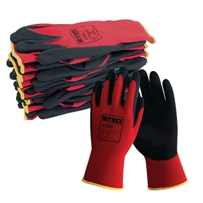 10 pairs of Unigloves Nitrex 275D General Handling Gloves with foam latex palm coating and close-fit design, in red/black, size 10 Unigloves Nitrex 275D general handling gloves allow for unimpeded dexterity and abrasion resistance with enhanced grip; an everyday solution for comfort and safety across multiple sectors Designed for a wide range of general handling applications, these gloves are a suitable solution to a variety of potential workplace hazards, helping to ensure workers' comfort and safety For everything from repairs to outdoor activities, the Unigloves Nitrex 275D gloves provide reliable protection against hazards like abrasion and tearing, even in the toughest working conditions The foam latex palm coating offers enhanced grip in dry and damp conditions, whilst the lightweight nylon liner provides comfort, dexterity and durability during work tasks