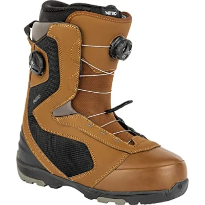 Nitro Men's Club Boa Dual '23 All Mountain Freeride Freestyle Quick Lacing System Boot Snowboard Boot, Brown Black, MP 26.0 // EU 40 US 8