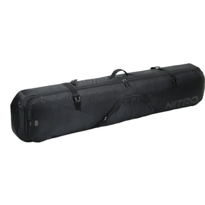 Division: large main compartment with all-round extra robust two-way zip, offers space for up to 3 boards or 1 board with binding, additional attached zip pocket for tools etc. Comfort of the padded, removable and ergonomically shaped shoulder strap and the additional padded carry handle ensure the most comfortable transport of your equipment Extras compression straps fix your board and the ID compartment (address pocket with transparent window) offers the possibility to securely attach your address details when travelling Material: high-quality material mix of 600D polyester with embroidered and printed logos, reinforced and coated material on the inside for a long service life 49 L / 159 x 33 x 10 cm