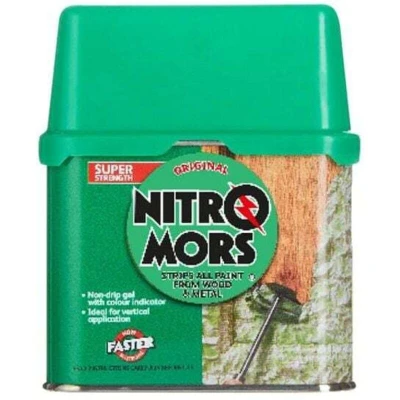 General description Nitromors All-Purpose Paint & Varnish Remover is a powerful gel designed for removing paint, varnish, and lacquer from various surfaces including wood, metal, and masonry. Its strong non-drip formula makes it ideal for vertical applications, ensuring even coverage without drips. The gel is green-colored, allowing you to see exactly where it has been applied for precise removal. It is effective against most types of coatings and is water and solvent washable, making it a versatile choice for DIY projects and home improvement tasks requiring paint removal. Technical specifications Volume: 375ml Type: Gel paint and varnish remover Color: Green Free from dichloromethane Water and solvent washable Compatibility and accessories Suitable for use on wood, metal, and masonry surfaces Can be used with brushes or spatulas for application Installation Apply the gel evenly onto the surface using a brush or spatula Allow it to sit for the recommended time to soften the coatings
