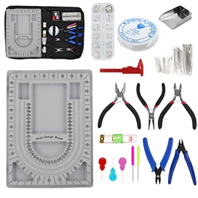 NIUPIKA Bead Board for Jewelry Making Tray Beading Supplies Flocked Design Necklace Maker Bracelet Trays Measurement Handmade DIY Craft Tools Kit with Pliers