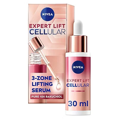 NIVEA Cellular Expert Lift 3 Zone Lifting Serum (30ml), Face with Pure 10x Bakuchiol, Visibly Reduces Wrinkles, Lifts Contours and Tightens Skin