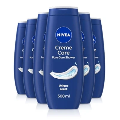 NIVEA Crème Care Shower Cream (500ml, Pack of 6) Caring Body Enriched with Almond Oil, Moisturising Gel Wash Vitamin C, E