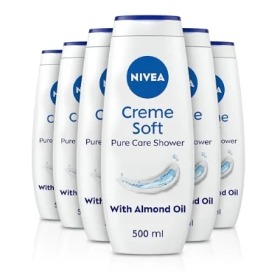 NIVEA Crème Soft (500ml, Pack of 6) Caring Shower Body Cream Enriched with Almond Oil, Moisturising Gel Wash Jojoba Glycerin and Panthenol