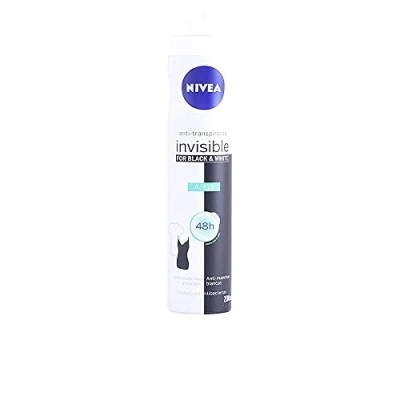 ANTI STAIN PROTECTION - Developed with the help of textile experts, this antiperspirant deodorant prevents the appearance of stains on your clothes. FEMALE FRAGRANCE - This antibacterial deodorant leaves a refreshing feeling on the skin and a subtle fresh, feminine and long-lasting fragrance. PROTECTED SKIN 48 HOURS - Suitable for all skin types, this women's deodorant is antiperspirant and provides protection for 48 hours. ALCOHOL FREE DEODORANT - To be gentle on the skin, this deodorant spray is a paraben free, mineral oil free and alcohol free deodorant. Box contents: NIVEA Black & White Invisible Active Spray for women to care for your skin and clothing, 1 x 200 ml spray.