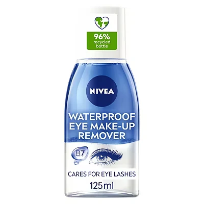 NIVEA Double Effect Waterproof Eye Make Up Remover (125ml), Daily Use Face Cleanser for and Mascara with Cornflower Extract Biotin