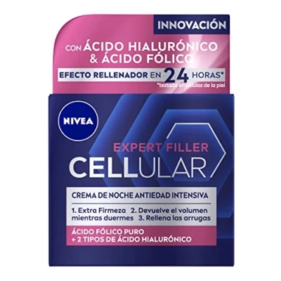 NIVEA Hyaluron Cellular Expert Filler Night Cream (1 x 50ml) Anti Wrinkle with hyaluronic Acid and folic Acid, Aging Filling Effect Within 24 Hours
