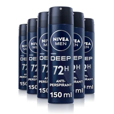 NIVEA MEN DEEP Black Carbon Anti Perspirant Spray (150ml), Men's Deodorant with 72H of Protection Against Stains and Odours, Bacterial, Developed MAXXTECH Formula