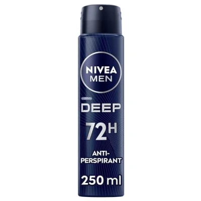 NIVEA MEN DEEP Black Carbon Anti Perspirant Spray (250ml), Men's Deodorant with 72H of Protection Against Stains and Odours, Bacterial, Developed MAXXTECH Formula