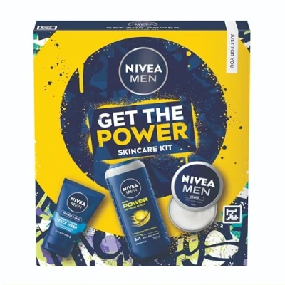 NIVEA MEN Get The Power Gift Set (3 Products) Men's Skincare Including Shower Gel, Face Wash, and Moisturising Creme, Perfect Christmas to Keep Him Fresh, Protected, Hydrated
