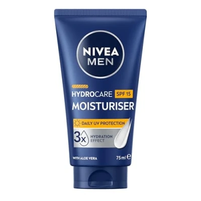 NIVEA MEN Hydrocare SPF15 Moisturiser (75ml), Mens Face Cream For Dry Skin, With SPF UVA/UVB Protection, Lightweight and Non Greasy Formula Aloe Vera Provitamin B5
