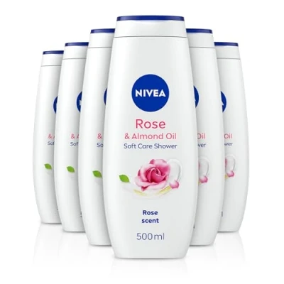 NIVEA Rose & Almond Oil Shower Cream (500 ml, Pack of 6), Moisturising Gel with Oil, Luxurious Body Wash for Women, Vitamin C, E