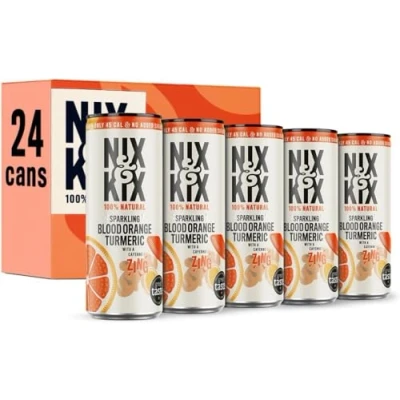 Nix & Kix Blood Orange Turmeric 100% Natural Premium Sparkling Soft Drink Low Calorie Vegan Friendly No Added Sugar Or Sweeteners 250ml x 24 Pack