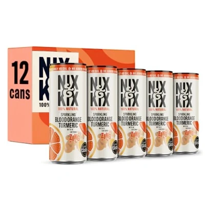 Nix & Kix Natural Blood Orange Turmeric Sparkling Soft Drink, Low Calorie Vegan Friendly, 250 ml (Pack of 12)