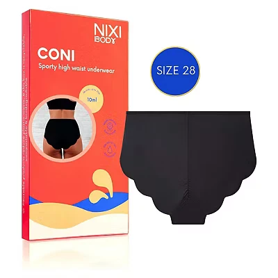 NIXI Body Coni Sporty High Waist Black Period Knickers (Size 8XL/UK 28), Sustainable Medium 15ml Absorbent Leak Proof Breathable Underwear, Bladder Leaks, Periods, Discharge & Sweat Protection