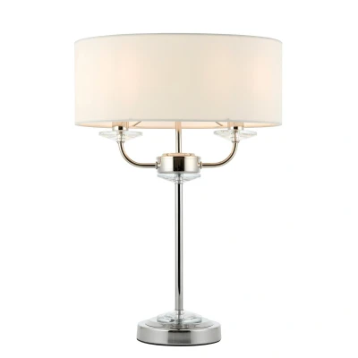 Nixon 2 Light Table Lamp Nickel Plate, White Silk Effect, Crystal Glass, E14