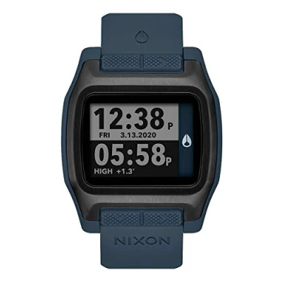 Blue strap made from super durable rubber mix for maximum comfort with double clasp loop for secure hold and increased breathability Black waterproof stainless steel case with a diameter of 44 mm and silicone push buttons in 12 and 6 o'clock positions Special digital module with high-resolution MLCD display and front lighting, 550 pre-programmed locations with precise tide, sun, moon data The watch has a water resistance of 10 bar (suitable for e.g. swimming or snorkelling) Like a high-quality wetsuit, the High Tide is all about durability and comfort
