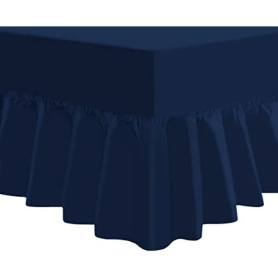 NIYS Luxury Bedding Percale Extra Deep Fitted Sheet Poly Cotton Frilled Lightweight Soft (135 x 190 25 cm, Fits 38 cm Frill) (Double, Navy)