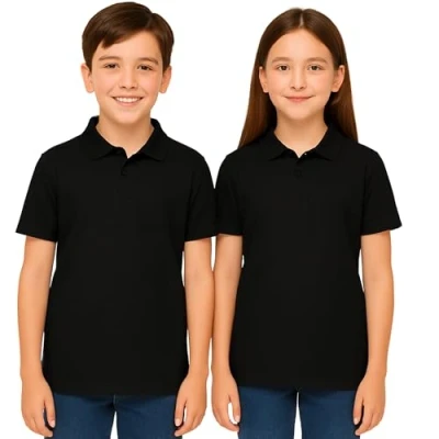 NIYS Pack of 2 Boys Girls Age 4 to 14 Years School Uniform Polo White, Grey, Sky Blue Plain Short Sleeve Shirts Sports Wear (UK, Age, 5 Years, 6 Regular, Black)