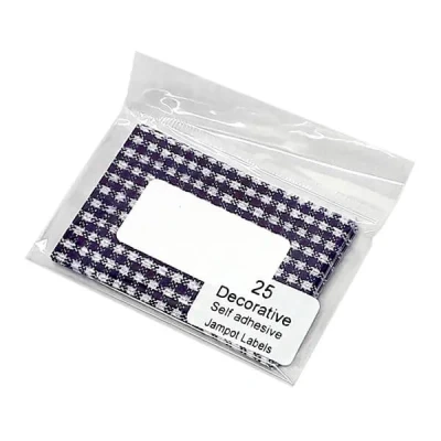 The NJ Products Gingham Blue Jam Pot Labels are supplied in a pack of 25.The quality printed self adhesive labels feature a colourful blue gingham design. Each label features a white space to write the contents and description on.Made in the UK.