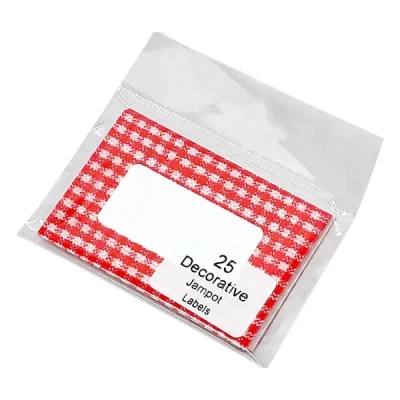 The NJ Products Gingham Red Jam Pot Labels are supplied in a pack of 25.The quality printed self adhesive labels feature a colourful red gingham design. Each label features a white space to write the contents and description on.Made in the UK.