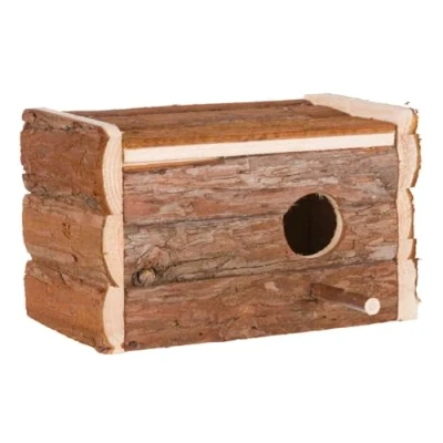 Natural living nesting box Made from natural wood material Hinged lid makes it easy to clean Comes with landing perch Measures 21 cm length by 13 cm width by 12 cm height
