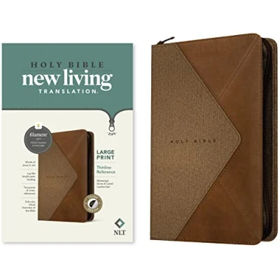 NLT Large Print Thinline Reference Zipper Bible, Filament Enabled Edition (Leatherlike, Messenger Stone & Camel, Indexed): New Living Translation, ... Reference,