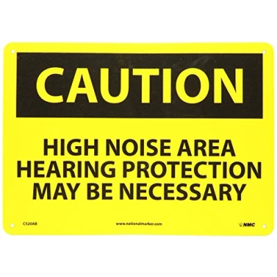 Caution Signage: the sign is designed to inform people about a high noise area where hearing protection is necessary to wear. It is often used to mark places with high decibel noise that can damage hearing Material: this sign is made of non-corrosive and weatherproof standard aluminum that has baked-on enamel coating to allow printing on both sides. It features pre-drilled holes on the radius corners for easy mounting Visibility: the legend “CAUTION - HIGH NOISE AREA - HEARING PROTECTION MAY BE NECESSARY” is printed in bold and legible text to ensure better readability along with visibility Specifications: the rectangular aluminum caution sign is OSHA compliant and is 14 in. wide, 10 in. high and 0.040 in. thick. The sign has yellow text on a black base and black text on a yellow base. It is also graffiti proof and resistant to UV and chemicals Sign Muscle: this OSHA compliant caution signage has an NMC Sign Muscle coating to protect the text against fading, scratches, scuffing, mold, and moisture. The UV-cured, clear coating creates a strong bond and also boosts the color and clarity