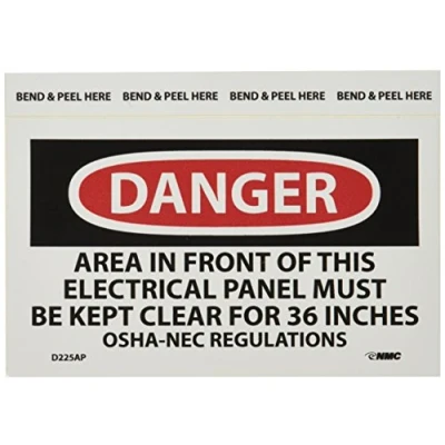 Safety Label: it informs the visitors and employee to keep a distance of 36 inches from the electrical panel. It is often used in industrial and manufacturing facilities to enforce safety regulations Durable: the OSHA compliant label is made of vinyl with pressure sensitive adhesive backing and can be mounted on smooth, curved or irregular surfaces. The material is ideal for long-lasting indoor and outdoor application Visibility: this label has the legend “Danger - Area in Front of This Electrical Panel Must Be Kept Clear for 36 Inches OSHA-NEC Regulations Label” in bold and clearly visible format for easy readability Specifications: the rectangular pressure sensitive vinyl label is 5 in. wide, 3 in. high, and 0.004 in. thick. It shows white text on a red base with black text on a white base and is available in a pack of 5 pieces Sign Muscle: this label has Sign Muscle coating that protects the text and image against fading, scratches, scuffing, mold, and moisture. The UV-cured, clear coating creates a strong bond and also boosts the color and clarity