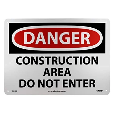 Danger Signage: this signage warns people about the construction area with potential threats. It is often used as a part of safety measures to ensure safe movement around the jobsite or industrial location to avoid severe accidents High Visibility: the sign with legend “DANGER - CONSTRUCTION AREA DO NOT ENTER” is legible, while the bold text is clearly visible. This OSHA sign is suitable to be placed across industrial areas, or busy construction sites Material: the sign made from Rigid Plastic Polystyrene has an impressive, indoor and outdoor lifespan. This standard sign is supplied with radius corners and pre-drilled corner mounting holes for easy installation Specifications: the rectangular and 0.050 in. thick plastic danger sign has bold black/white text on white/red base. This sign measures 14 in. length by 10 in. height Sign Muscle: this danger sign has NMC Sign Muscle coating that protects the text and image against fading, scratches, scuffing, graffiti and mold. The UV-cured, clear coating creates a strong bond and boosts the color and clarity