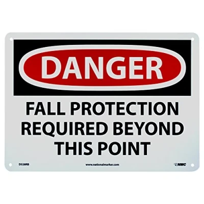 Danger Signage: this sign alerts those who are working at certain heights to ensure their fall protection gear is in place. It can be used at construction sites and adventure sports facilities to ensure safety Material: the OSHA sign is made from rigid plastic polystyrene that has an impressive, indoor and outdoor lifespan. This standard sign has radius corners and pre-drilled corner mounting holes for easy installation Visibility: the legend “DANGER – FALL PROTECTION REQUIRED BEYOND THIS POINT” is printed in bold and legible text to ensure better readability Specifications: the rectangular plastic danger sign is OSHA compliant and is 14 in. wide, 10 in. high and 0.050 in. thick. The sign has white text on a red base and black text on white base. It is also graffiti proof and resistant to UV and chemicals Sign Muscle: this OSHA danger signage has an NMC Sign Muscle coating to protect the text against fading, scratches, scuffing, mold, and moisture. The UV-cured, clear coating creates a strong bond and also boosts the color and clarity
